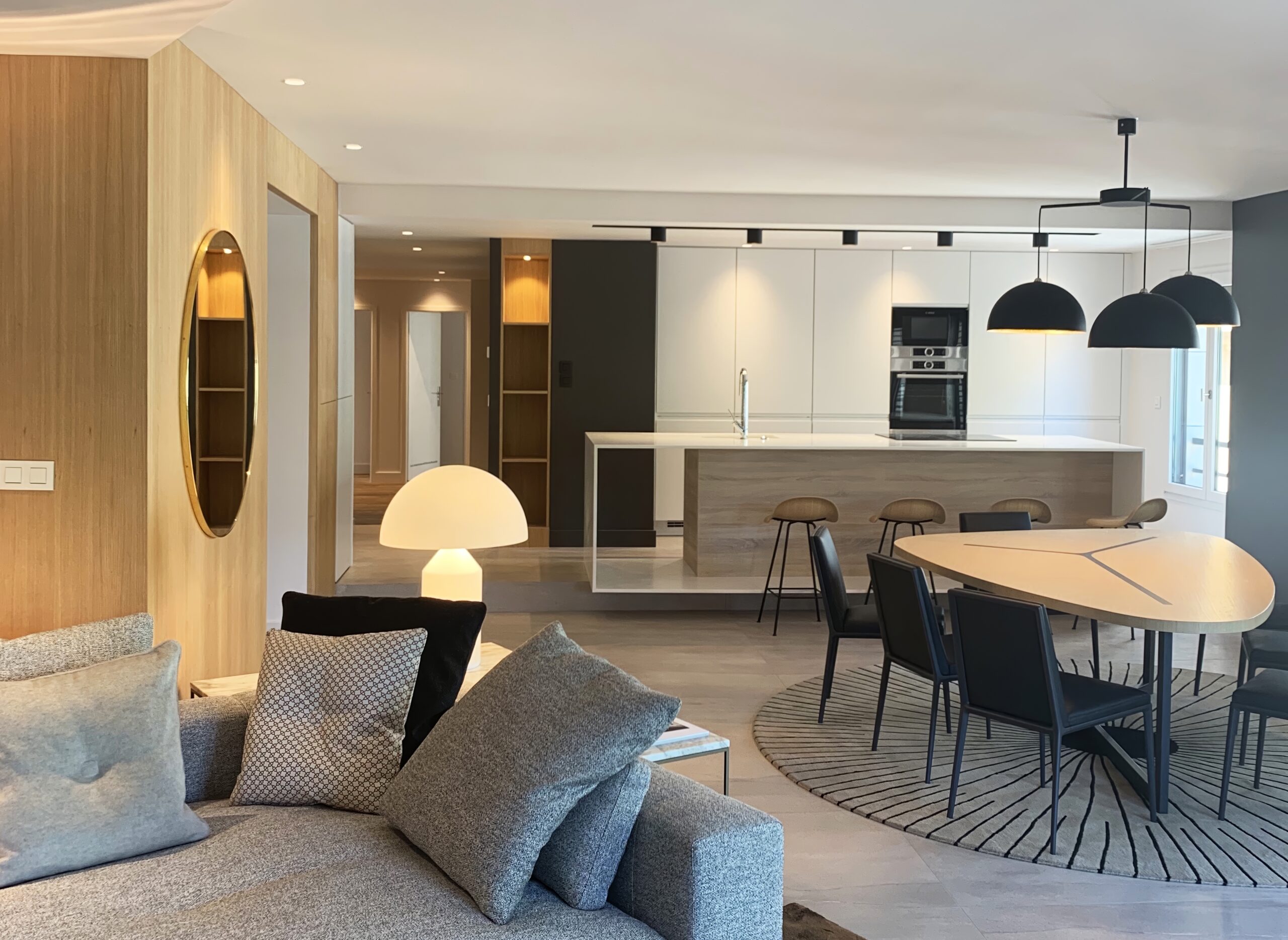 Notre agence ERIC AGUERA ARCHITECTES signe la rénovation de cet appartement situé en plein cœur de Lyon, à deux pas du parc de la Tête d’Or. Avec une surface d’un peu plus de 200 m², nous avons imaginé un lieu de vie ouvert et fonctionnel, faisant du séjour et de la cuisine la pièce centrale de l’appartement.